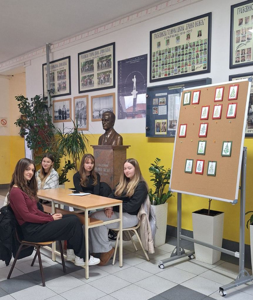 Овај предновогодишњи петак није био само дан за поправљање и закључивање оцена, имао је и свој хуманитарни део. Наиме, организована је хуманитарна акција продаје новогодишњих честитки. Прикупљена средства су са љубављу и најлепшим жељама предата члановима колектива који су на дужем боловању.